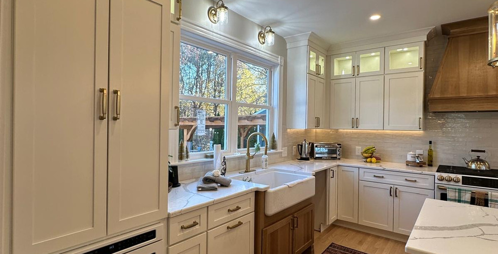 We are happy to announce that our project in Walpole, MA is complete! Below is a gallery with images of the completed first-floor kitchen, half bathroom, and the second-floor addition of the master bathroom, laundry area, and closets.